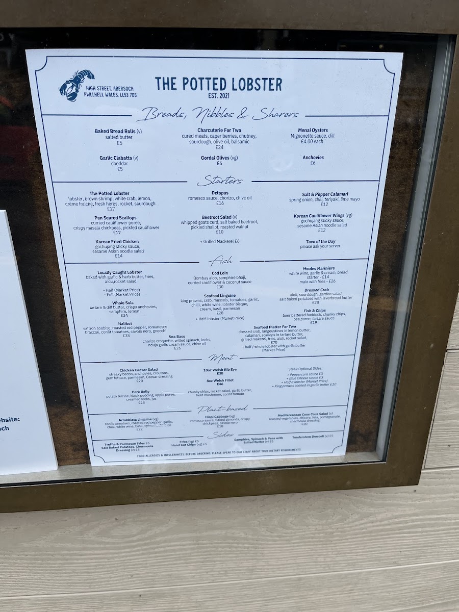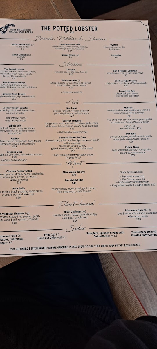 In conclusion, The Potted Lobster Menu offers an exceptional dining experience that is truly reflective of Abersoch's culinary potential. Whether you're a local or visiting, it’s a must-visit destination for anyone looking to enjoy fresh, flavorful seafood in a beautiful setting.